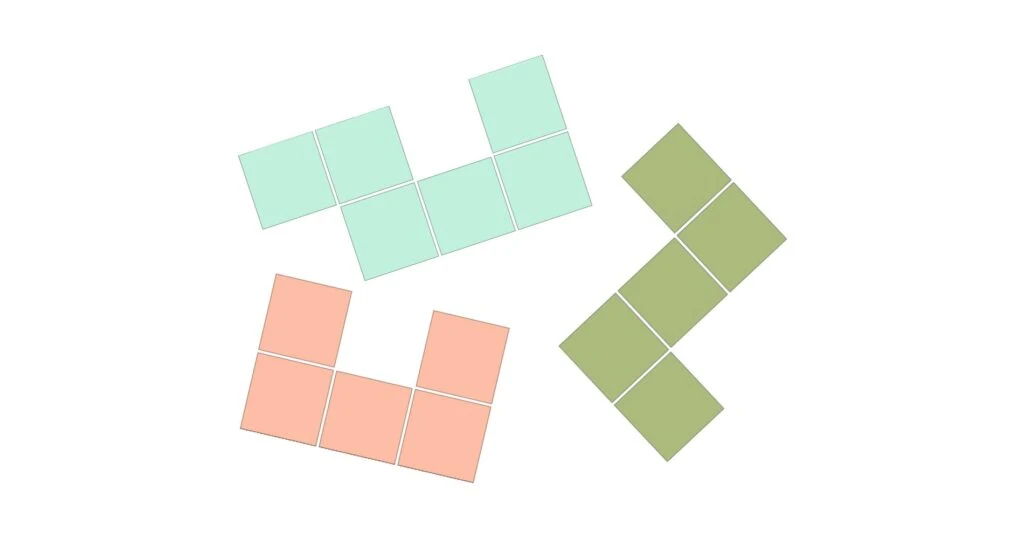 Rearrange the three polyominoes so that they form a symmetrical shape.