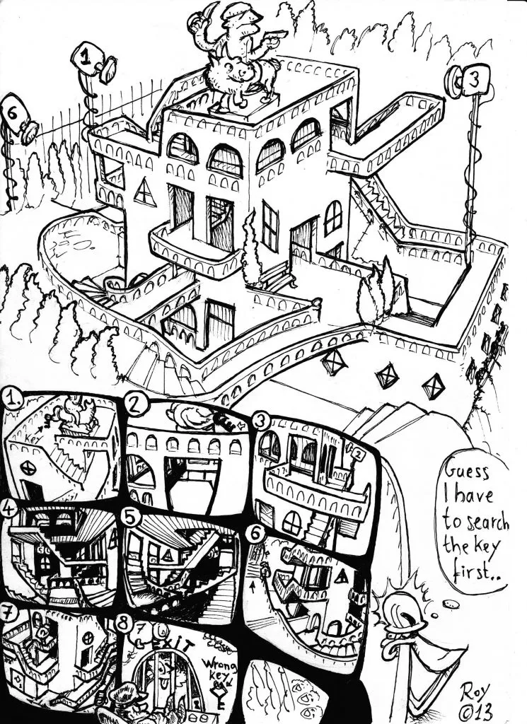 Can you find your way through this mansion, by using the information from the security cameras? In order to escape, you must use the correct key and unlock the exit door.