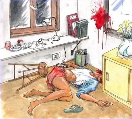 Examine the picture and determine whether the woman was killed or she committed a suicide.