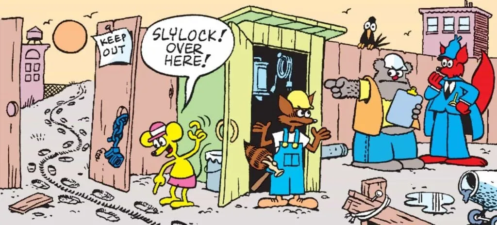 Tools were stolen from a construction site. Max Mouse found footprints and a tire track, leading him to believe there were two thieves – one walking and the other riding a bike. Even though Slylock Fox believes both tracks are related to the robbery, he suspects there was only one thief. Why?
