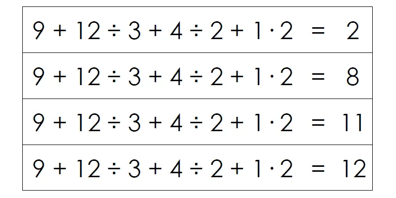 Insert the missing parentheses into each equation to make it true.
