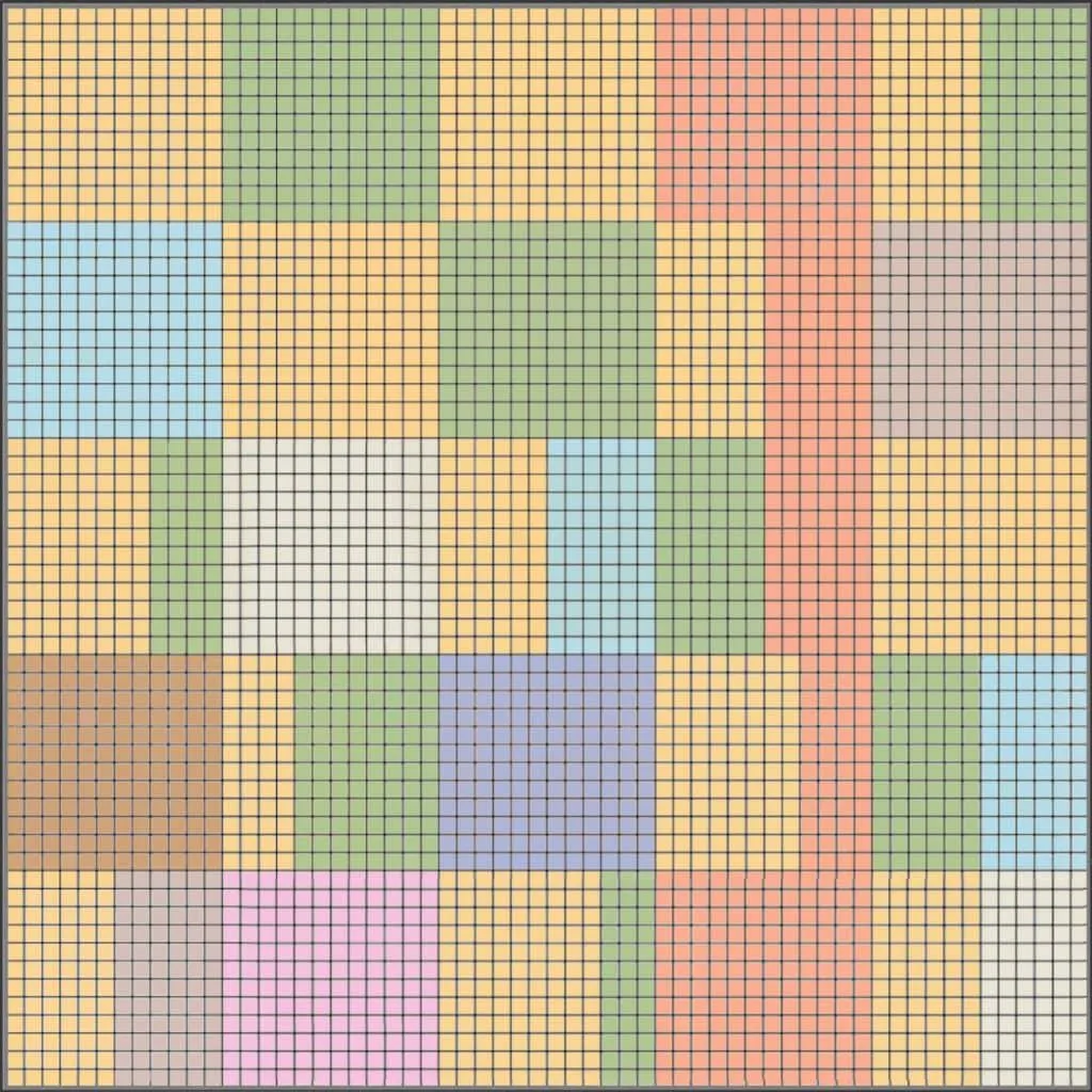 A piece of a beautiful tapestry is missing. Can you figure out what its colors are?